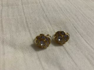 10€ cada. Bisutería, bañados en oro. Pedrería. Uno con diseño de flor rosetón y tipo botón. El otro con diseño floral y tipo gota colgante racimo. Ambos con perlas y cristales, cierre de presión (mariposa). Hipoalergénicos. No Bizum. NO ENVÍOS.