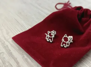 Pulsera de cuero y acero con cierre magnético. Pendientes de acero diseño gatito