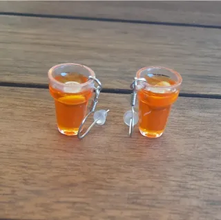 Originales pendientes en miniatura con forma de vaso de té con su limón. El gancho es de acero y la miniatura es de: plástico, resina y fimo. - Diseño divertido y llamativo. - Gancho es de acero. - Las medidas se pueden ver en las fotos. - Es nuevo y se entrega en sobre de papel de regalo.