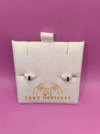 Elegantes pendientes de plata 925 con un diseño moderno. - Detalle central en color negro. - Acompañados de pequeñas circonitas brillantes.