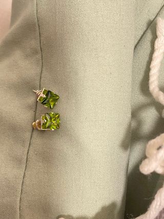 Elegantes pendientes con un diseño cuadrado y una piedra verde brillante.
