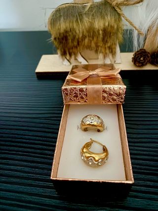 Conjunto de pendientes con un diseño elegante y moderno. - Pendientes tipo aro. - - Detalles ondulados y pedrería.