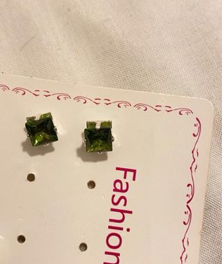 Elegantes pendientes con un diseño cuadrado y una piedra verde brillante. Completamente nuevos, sin usar.