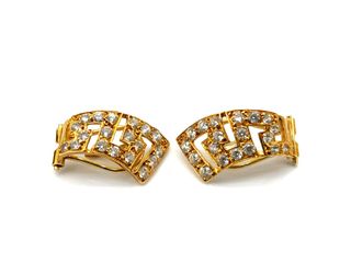 Elegantes pendientes de aro con un diseño llamativo. - Detalles en cristales brillantes. - Cierre de clip.