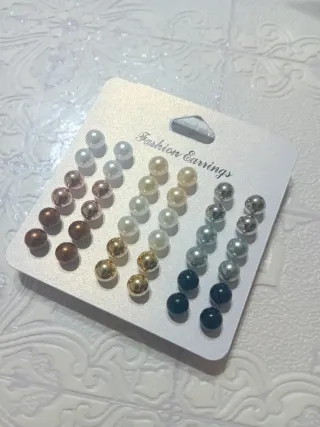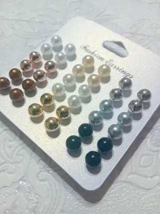 Conjunto de pendientes de perlas de muchos colores. - Diseño elegante y versátil. - Variedad de tamaños y acabados.