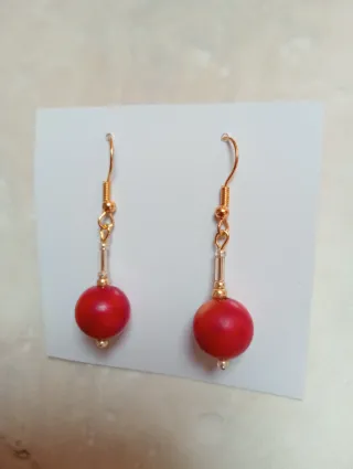 Elegantes pendientes de coral rojo mediterráneo y detalles dorados. - Cuentas de coral rojo. - Enganches dorados.
