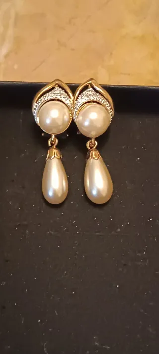 Pendientes vintage lágrima perla chapado oro 18 KT