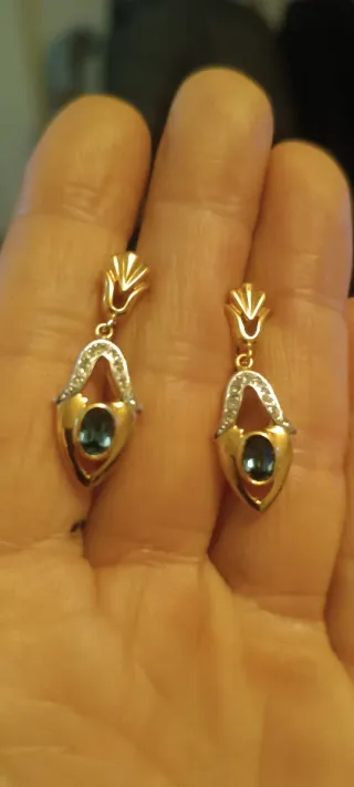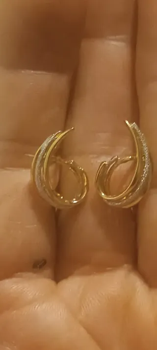 Elegantes pendientes con un diseño único. - Combinación de oro y plata. - Cierre catalán para mayor seguridad. - Detalle de piedras brillantes.