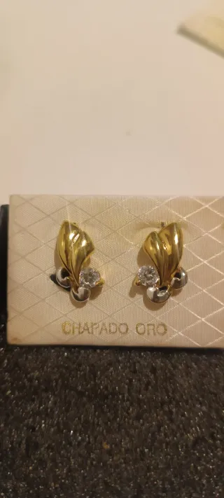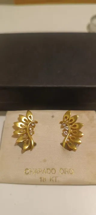 Elegantes pendientes con un diseño delicado y moderno. - Acabado chapado en oro. - Diseño con forma de hoja o pluma. - Pequeño detalle de circonita en cada pendiente.