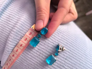 Elegantes pendientes con circonitas de un vibrante color azul y detalles plateados. - Diseño colgante con varias circonitas. - Combinación de circonitas ovaladas y cuadradas.