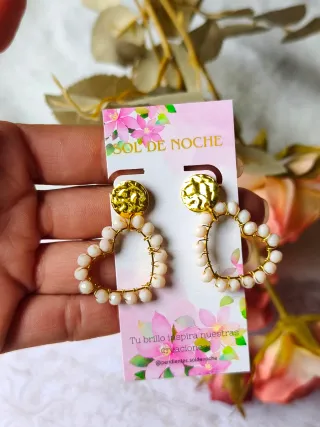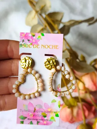Pendientes con forma de corazón, elaborados con cuentas y detalles dorados. - Diseño de corazón. - Acabado dorado.