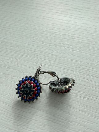Pendientes con un diseño floral y detalles en cuentas. - Cuentas de color azul y rojo. - Cierre catalan Muy vistosos