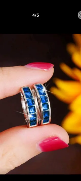 Elegantes pendientes de aro con un diseño moderno y detalles brillantes. Perfectos para añadir un toque de color a tu look. - Circonitas cúbicas de color azul intenso. - Acabado plateado brillante.