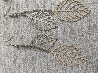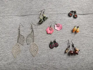 Conjunto de pendientes de bisutería con diseños variados. - Pendientes largos con forma de hoja. - Pendientes con detalle de flor. - Pendientes con cuentas.