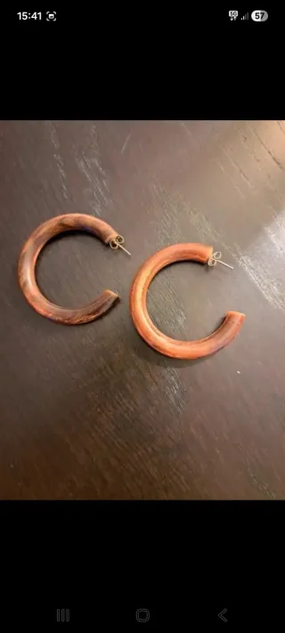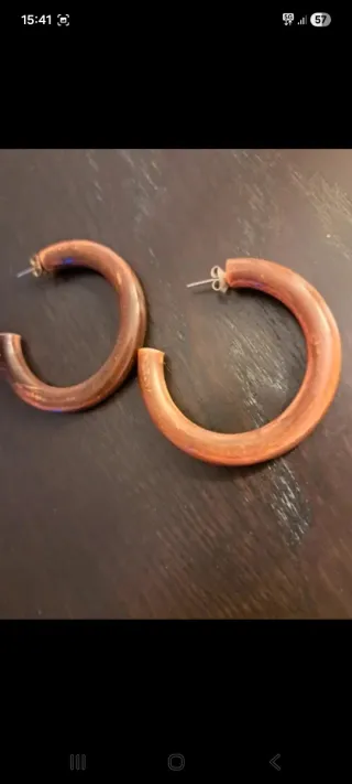 Pendientes de aro con un diseño que imita la madera. - Diseño circular. - Acabado en tonos marrones y multicolor.
