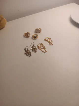 Lote variado de pendientes sueltos ....sin pareja - Pendientes dorados con detalles. - Pendientes con piedra verde. - Pendientes con perla.