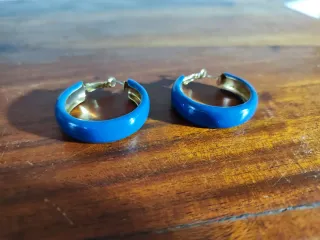 Elegantes pendientes de aro con un llamativo acabado azul y detalles dorados. - Diseño moderno y versátil. - Acabado interior en dorado.
