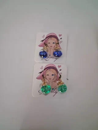 Conjunto de pendientes con detalles dorados. Cada par 2€. Los seis pares 8€ en total - Pendientes con forma de corazón en tonos rosados y transparentes. - Pendientes con cuentas redondas y detalles dorados. - Pendientes con forma de corazón en tonos verdes y transparentes. - Pendientes con cuentas redondas y detalles en forma de flor.