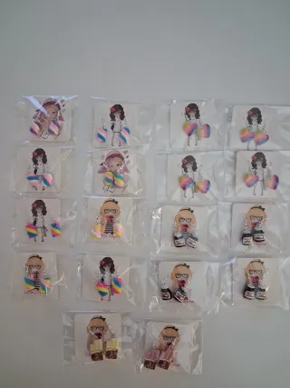Pendientes con diseños de bolsas de chuches Haribo. - Pendientes Haribo Frizz. - Pendientes Haribo Fruitmania. - Pendientes Haribo Goldbaren. - Pendientes Haribo Berries.