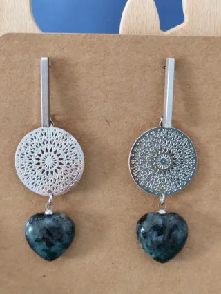 Lote Pendientes Corazón Filigrana Piedra Natural