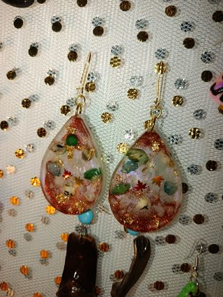 Pendientes únicos hechos a mano con un diseño de pez. - Detalles en azul y rojo. - Cierre de anzuelo plateado. Diferentes diseños ,desde 4.00€ a 10€ depende el diseño .se puede personalizar,todos los enganches son de plata o acero inoxidable. Los de buganvilla son flores naturales. También encapsulado de flores o algo que le tengáis un amor especial o valor sentimental como: cenizas ,pelo etc.. se hacen colgantes y muchas cosas más .