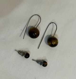 Añade un toque de elegancia y propiedades energéticas a tu look con estos dos pares de pendientes de piedra natural de ojo de tigre! Se vende el lote completo o por separado: Lote completo (2 pares): 10 € Pendientes de Gancho (más grandes): 7 € Pendientes de Botón/Stud (más pequeños): 5 € Ambos pares presentan las características bandas doradas y marrones del auténtico ojo de tigre, una piedra conocida por atraer la buena suerte y la protección. ¡No pierdas la oportunidad de conseguir este bonito conjunto! #OjoDeTigre #PiedraNatural #Pendientes #Joyas #Moda #Complementos #Wallapop #Vinted