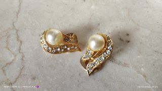 Pendientes perla y dorado antiguos