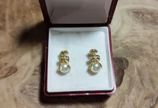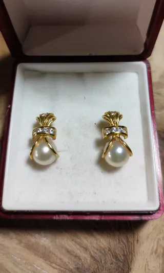 Pendientes de señora de oro, circonitas y perla