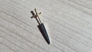 Pendiente de la colección Juego de Tronos de Pandora, es la espada aguja con la inscripción Not Today. - Diseño inspirado en la serie. - Acabado en oro 14k y plata.