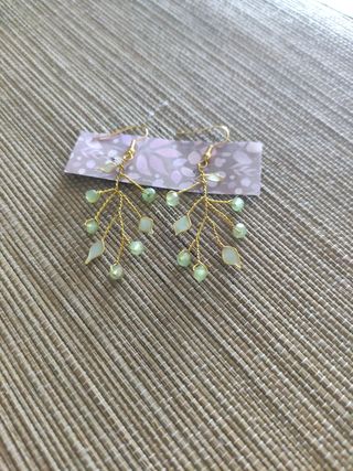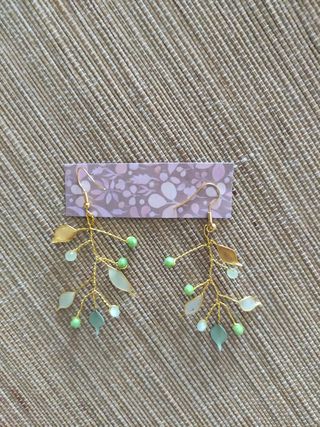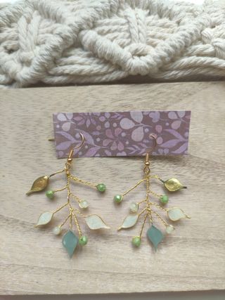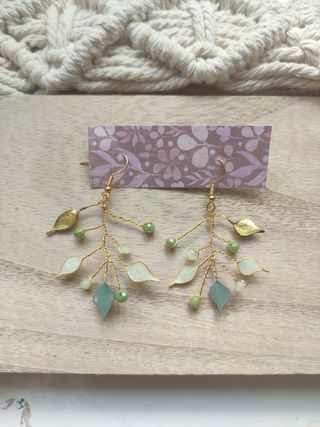 Pendientes de piedras, perlitas y hojas