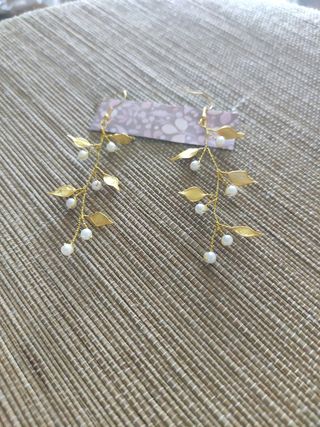 Pendientes de perlitas y hojas