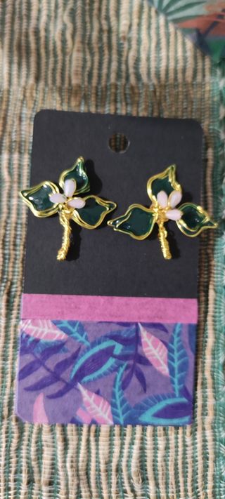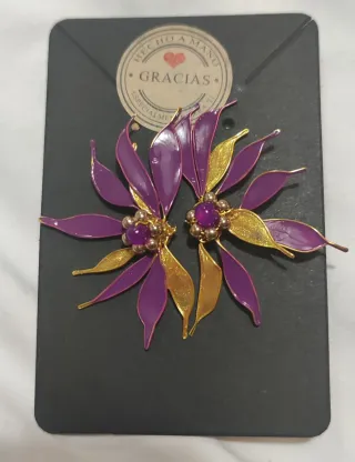 Pendientes flor morados y dorados nuevos