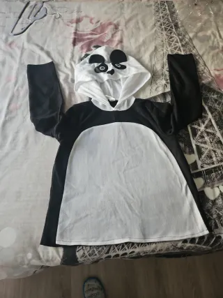 Disfraz de oso panda con capucha, ideal para fiestas o eventos. - Diseño divertido en blanco y negro. - Tejido suave y cómodo. Talla M-L