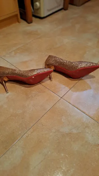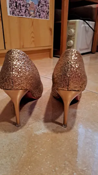 Zapatos de tacón dorados con purpurina
