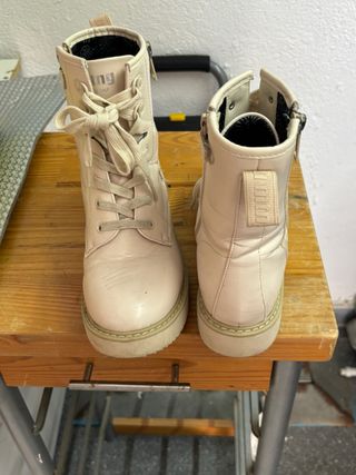 Botines de caña alta en color beige, perfectos para completar tu look. - Cierre con cordones y cremallera lateral. - Detalle de logo en la parte trasera. - Suela de goma resistente.