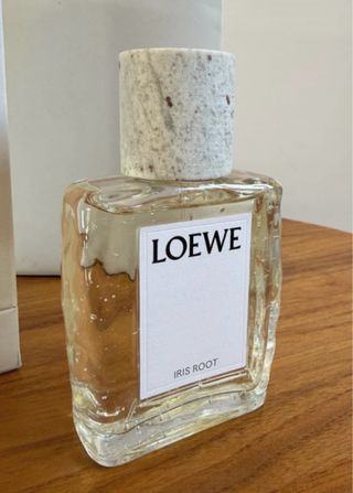 Perfume Loewe Iris Root, 100ml, unisex - Botella de cristal transparente. - Tapa de aspecto rústico con motas. - Bolsa de cartón de Loewe incluida