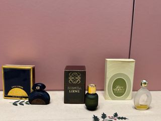 Conjunto de dos miniaturas de perfumes Loewe. - Un perfume para hombre. - Otro perfume con un diseño floral en la caja. -Se venden a 10€ la unidad pero cabe la posibilidad de hacer un lote con mas de la misma marca o mas de otras marcas.