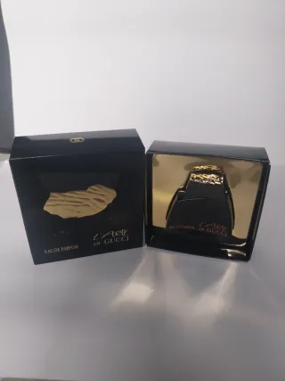 Miniatura del icónico perfume L'Arte di Gucci. - Diseño elegante en color negro y dorado. - Presentación en caja original.