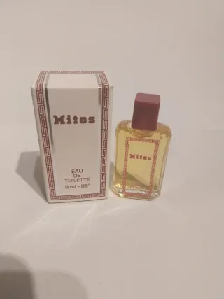 Miniatura de perfume Mitos Eau de Toilette. - Contenido: 8 ml. - Formato miniatura, ideal para coleccionar o llevar de viaje. - Diseño clásico y elegante.