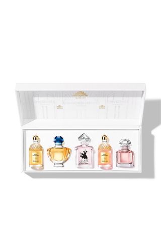Un conjunto de 5 miniaturas de fragancias Guerlain para descubrir y usar según tus deseos. Este conjunto incluye: • Aqua Allegoria Forte Mandarine Basilic – Eau de Parfum 7,5 ml • Shalimar – Eau de Parfum 5 ml • La Petite Robe Noire – Eau de Parfum 5 ml • Aqua Allegoria Rosa Rossa Forte – Eau de Parfum 7,5 ml • Mon Guerlain – Eau de Parfum 5 ml Precio exclusivo online web Guerlain: 88€
