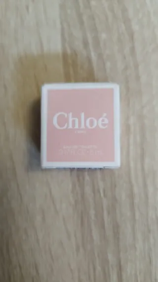 Miniatura de perfume Chloe. - Envase de cristal con detalles. - Líquido de color rosa.