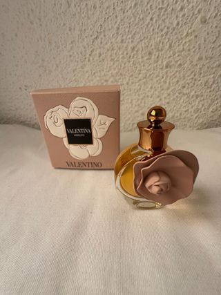 Miniatura del perfume Valentina Assoluto. Absoluto - Diseño elegante con detalles florales. - Frasco con acabado dorado y detalles en rosa.