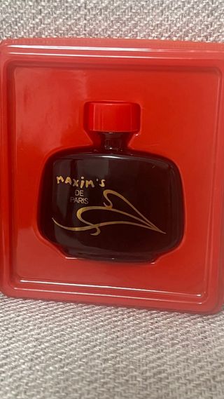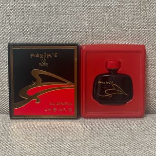 Miniatura de perfume vintage de Maxim's de Paris. - Contiene 4 ml (0.14 fl. oz.) de Eau de Parfum. - Presentación en caja negra y roja.