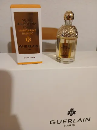 Miniatura del perfume Mandarine Basilic de Guerlain. - Fragancia cítrica y aromática. - Presentación elegante en frasco de cristal.