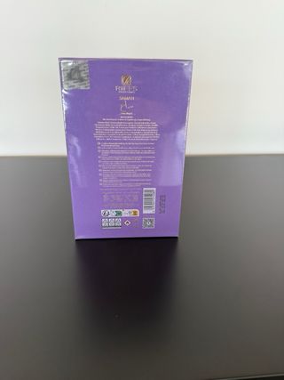 Este perfume de la serie Ahjar es una fragancia cautivadora. - Aroma floral y afrutado. - Presentación elegante en botella de vidrio morado. - Tapa dorada. - Incluye caja original.