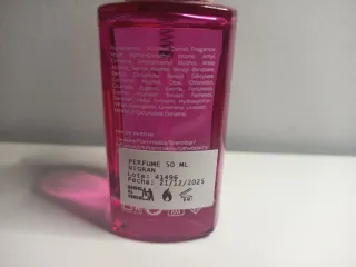 Elegante perfume de Valentino con un toque rosado y detalles dorados. - Diseño de botella texturizado. - Etiqueta metálica con el nombre de la marca.