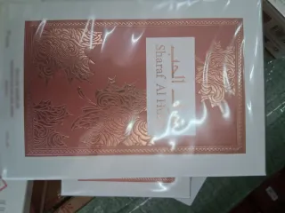 Elegante perfume árabe para mujer. - Envase con detalles dorados y rosados. - Diseño ornamental en la caja y el frasco. - Contenido: 100 ml.