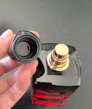 Este perfume de Carolina Herrera tiene un diseño icónico en forma de tacón de aguja. - Frasco de vidrio rosa con detalles brillantes. - Tapa negra brillante. - El tacón es dorado. No tiene caja