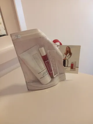 Conjunto de productos de belleza y cuidado personal. - Perfume Valentine Milano Eau de Parfum para mujer. - Gel hidratante Soothing Gel con Rosa Mosqueta de Leticia Well. - BB Cream de Leticia Well. - Base de maquillaje Matte Effect de D'Donna.