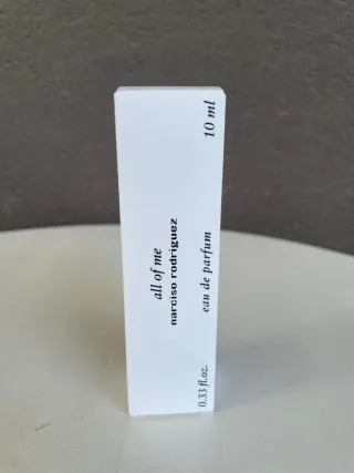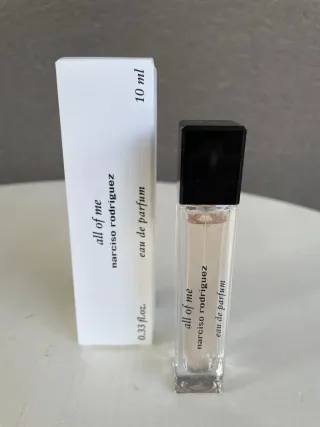 Este es un frasco de All of me de Narciso Rodriguez. - Contenido: 10 ml / 0.33 fl.oz. - Tipo: Eau de Parfum.